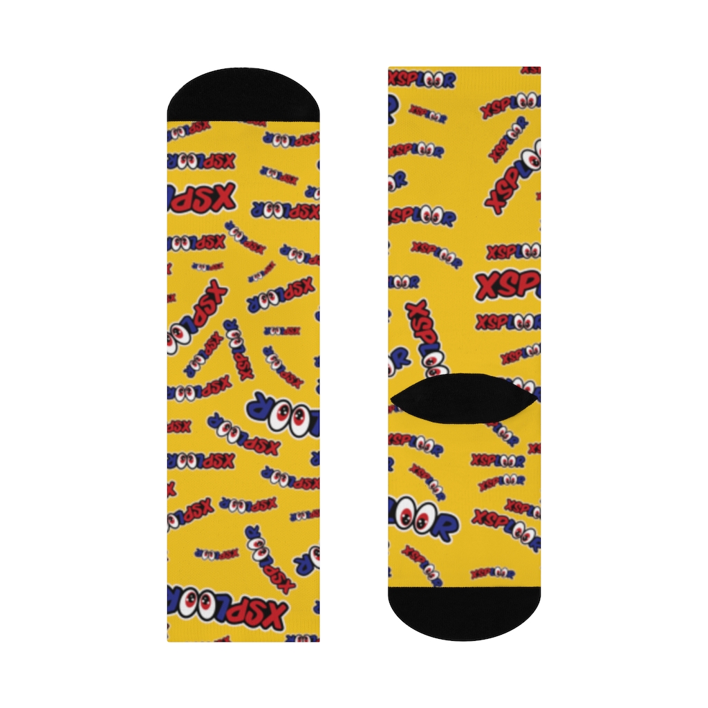 Show off a classy and sassy side of you in these comfy socks. The XSPLOOR Arched logo decorates these socks from top to bottom, letting the world know you have great taste in fashion. This pair shows off the logos over a lemon yellow background.